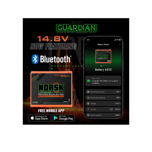 Our batteries stem from the dedication of outdoor enthusiasts relentlessly pursuing advanced rechargeable lithium technology to power their passions. Recognizing the urgency of a robust power source, the Norsk 14.8V 50Ah Lithium-Ion Battery is designed to endure over 2,000 charge cycles, backed by an exceptional warranty. Enjoy a standard 4-year warranty, plus an additional 2 years when you sign up for the Norsk Guardian® App, ensuring enduring performance. Whether you’re braving the cold on a fishing trip or embarking on an off-grid adventure, you can trust Norsk Lithium® to deliver reliable power when you need it most.