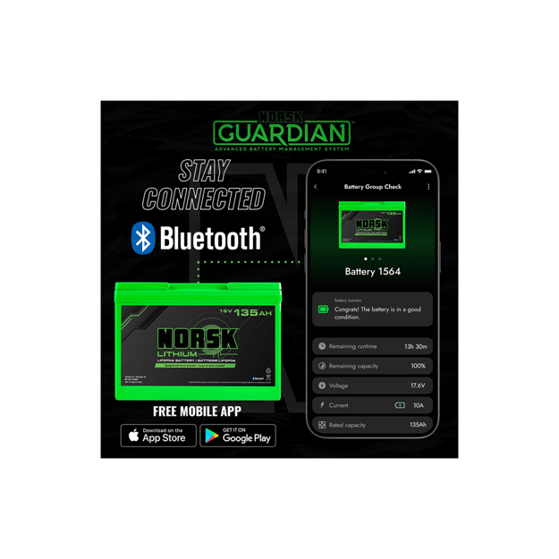 Seamlessly manage your battery’s performance with the Norsk Guardian® App. Monitor battery status, control the Deep Sleep™ mode, and access Emergency Start Reserve [ESR] with ease, all from the convenience of your smartphone.