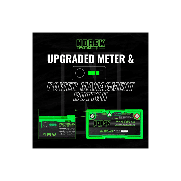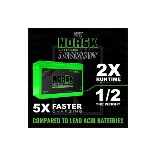 Our batteries stem from the dedication of outdoor enthusiasts relentlessly pursuing advanced rechargeable lithium technology to power their passions. Recognizing the urgency of a robust power source, the Norsk 16V 135AH LiFePO4 Lithium Deep Cycle Battery is designed to endure over 4,000 charge cycles, backed by an exceptional warranty. Enjoy a standard 10-year warranty, plus an additional 2 years when you sign up for the Norsk Guardian® App, ensuring enduring performance. Whether you’re braving the cold on a fishing trip or embarking on an off-grid adventure, you can trust Norsk Lithium® to deliver reliable power when you need it most.