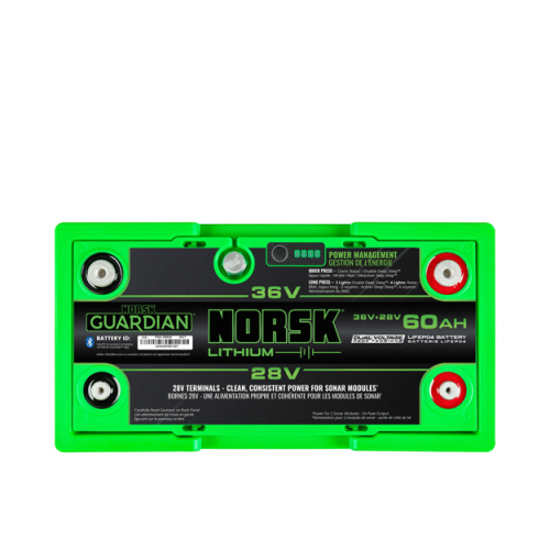 Elevate your trolling motor experience with the Norsk Lithium 36V + 28V 60AH Dual Voltage LiFePO4 Lithium Battery. Designed with anglers in mind, this advanced battery delivers dual voltage functionality in a single, compact unit. Featuring separate terminals to meet different power needs, the 28V terminal ensures your sonar module runs cooler and longer than a 12V power source, optimizing the performance of your forward-facing sonar.
