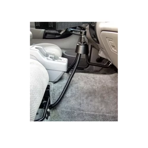 The RAM-316-3SW1U consists of the RAM POD III No-Drill™ vehicle base, three rigid aluminum rod legs, ratchet swing arm and RAM Tough-Tray™. The base of the mount connects to your seat rail without any drilling necessary. The rigid aluminum rod legs can be bent to position your device to its optimum viewing location. The mount is designed with a RAM 1.5″ diameter patented rubber ball and socket system that has adjustment points at both ends of the double socket arm; this allowing for almost infinite adjustment and perfect viewing angles.
