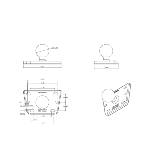 The RAM-B-345U brake/clutch reservoir cover ball base fits cleanly over your existing reservoir cover with the 1″ rubber ball centered. Made of die cast aluminum with an overmolded rubber ball, both form and function are unsurpassed. Installation is simple and all necessary hardware is included.