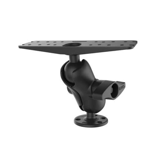 The RAM-D-111U-C consists of a SHORT double socket arm, 3.68″ diameter round base and 11″ x 3″ rectangular base. The round base contains pre-drilled holes, including two holes at 180 degrees and three holes at 120 degrees. The rectangle base contains different combinations of pre-drilled holes which will match up to many electronic devices and mounts, including Marine GPS, CB Radios, Ham Radios, Gimbal Brackets and more.