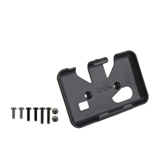 All cables can stay connected to the unit while in the RAM cradle. The cradle includes a set of two nuts and bolts to connect the cradle to any of the RAM compatible mounts.