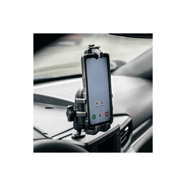 The RAM Quick-Grip Pro features a spring-loaded design that allows easy one-handed insertion and removal of your phone. The adjustable side arms ensure that your phone will remain secured in the holder without blocking any ports or buttons. Complete the solution by building your mount—this holder is RAM Compatible featuring a 2-hole AMPS pattern for adding a diamond ball adapter.