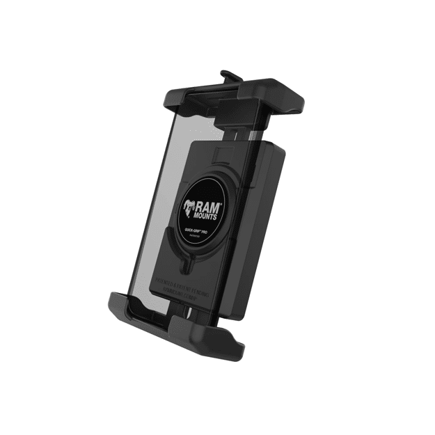 The RAMQuick-Grip Pro XL features a spring-loaded design that allows easy one-handed insertion and removal of your device. Large and small shims are included to provide a snug, secure fit for large and small phones without a case. Complete the solution by building your mount—this holder is RAM Compatible featuring a 2-hole AMPS pattern for adding a diamond ball adapter.