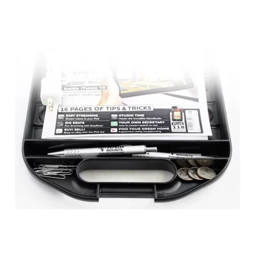 - Multiple storage spaces inside the case to hold documents, pens, nuts, bolts, etc…