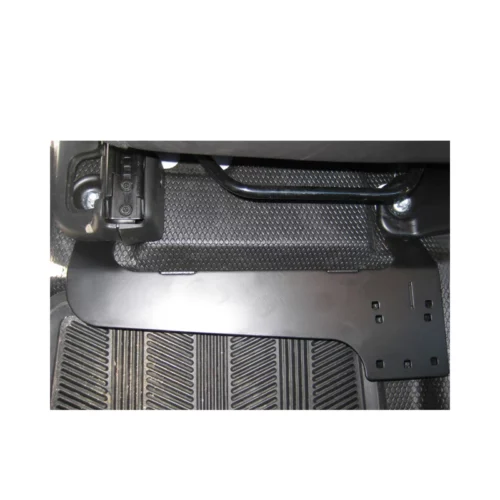 The RAM® No-Drill™ laptop mounting base features a heavy-duty steel mounting base custom designed to fit this vehicle perfectly. Using the passenger side seat rail bolts as attachment points, existing hardware is used to secure the laptop mount base in the vehicle.