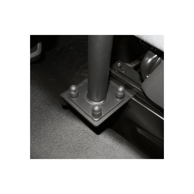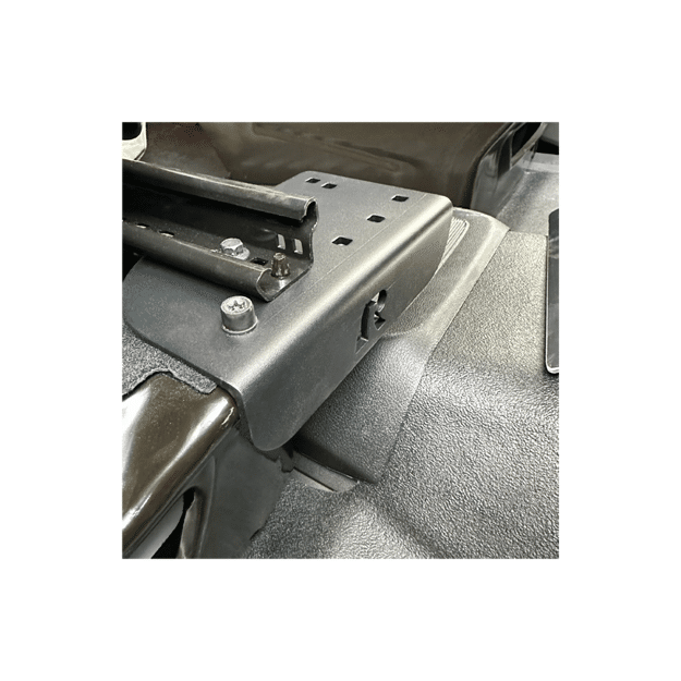 The RAM® No-Drill™ laptop mounting base for the Ford Transit Full Size Van features a heavy-duty steel mounting base custom designed to fit this vehicle perfectly. Using the front bench or passenger side seat rail bolts as attachment points, existing hardware is used to secure the laptop mount base in the vehicle.