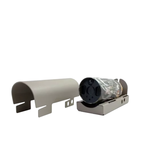 Custom fit Security Enclosure for all MicroFire Series cameras (will not fit HyperFire or UltraFire Series Cameras). 16 gauge steel with weather resistant powder coat finish (available in Tan or Grey). Lock sold separately. Dimensions: 8″ long, 3″ wide, 3″ tall. Made in the U.S.A. Use of the enclosure may slightly reduce wireless communication range.