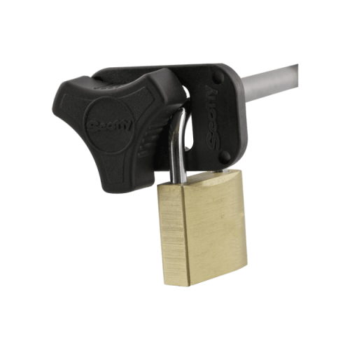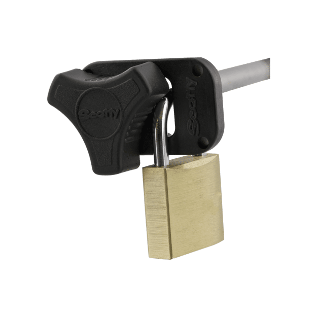 - Works in conjunction with existing downrigger mounting knobs and padlocks of your choice